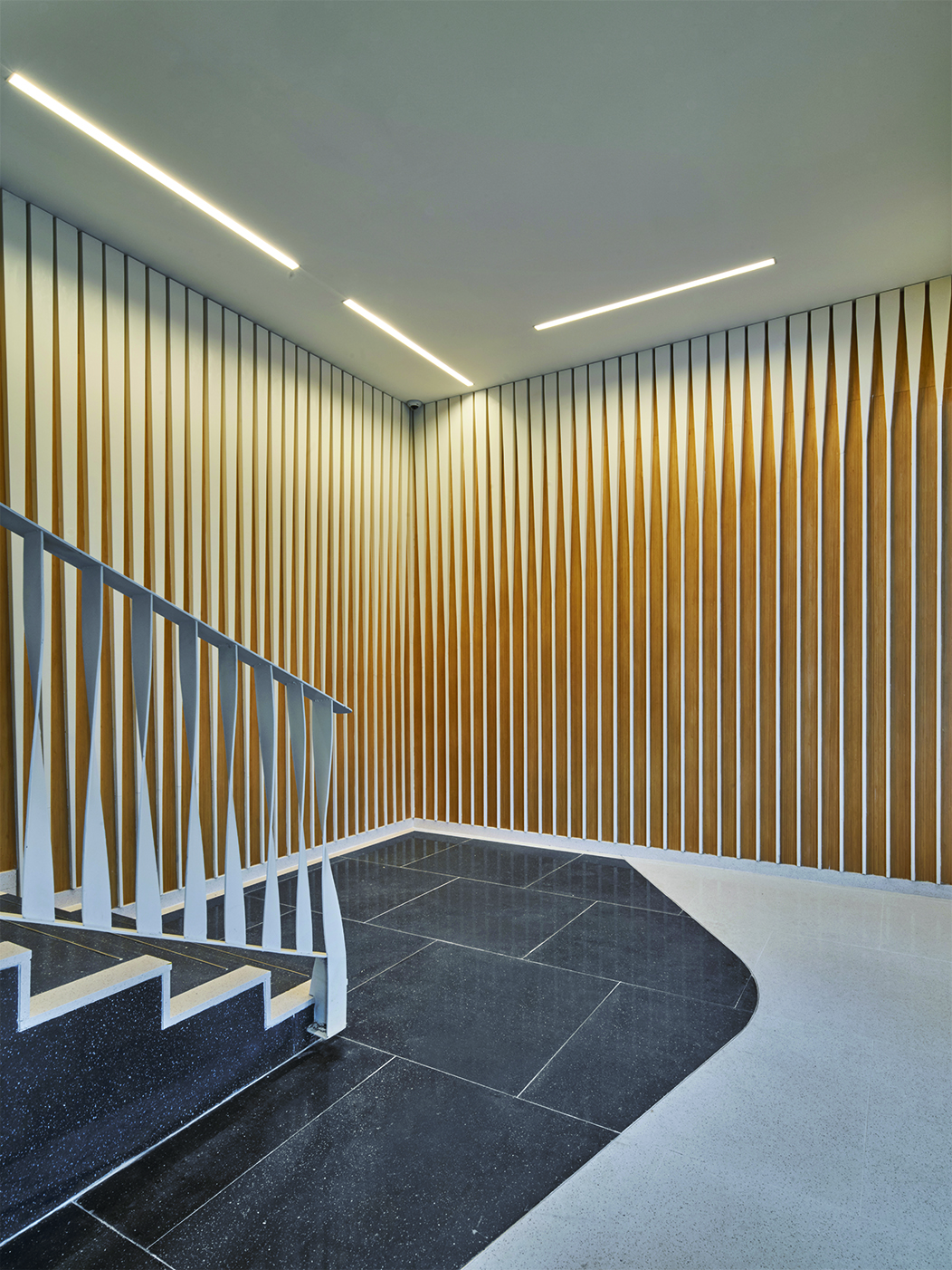 On the interior, we kept the original finishes of the internal stair and extended its material language throughout the lobby spaces, stitching these units back together. Our design treasures the original design intentions of original architects without nostalgia, but exploits the timelessness of the smart and simple design moves. By using sustainable materials and construction methods, it shows that it is possible to incorporate contemporary technology within a building structure that was constructed more than 60 years ago.